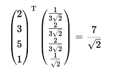 For example, in a 4-dimensional space, if the first principal component vector is known, and a data point is given as (2, 3, 5, 1)ᵀ, then the score can be computed using the formula shown in Equation 1 (to follow).